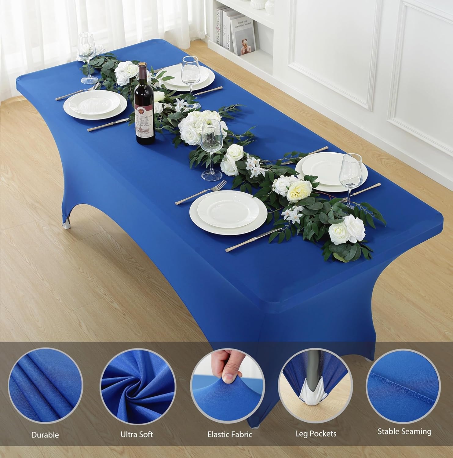 Craft And Party 2 Pack 6ft Royal Blue Spandex Tablecloth – Fitted Stretch Cover – Universal Fit for Folding Tables – Wrinkle-Free, Washable – Ideal for Parties, Weddings, Events