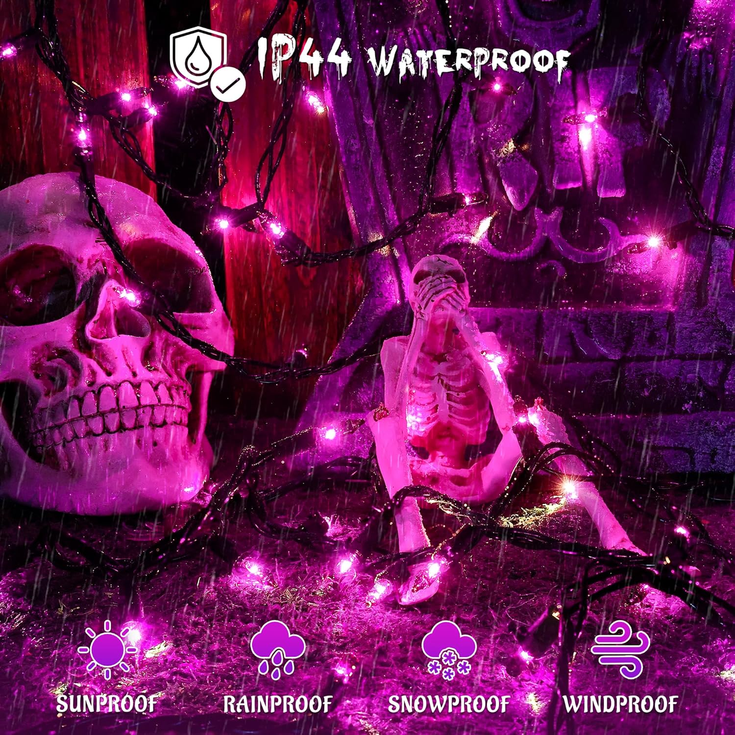 - ăVersatile Indoor and Outdoor Decoră: Featuring an IP44 waterproof rating, these purple fairy lights are perfect for wrapping around trees or enhancing the ambiance of your bedroom, living room, fireplace, garden, patio, balcony, fences, or wreaths. They are ideal for holiday decorations, birthdays, festivals, haunted houses, and Halloween parties.