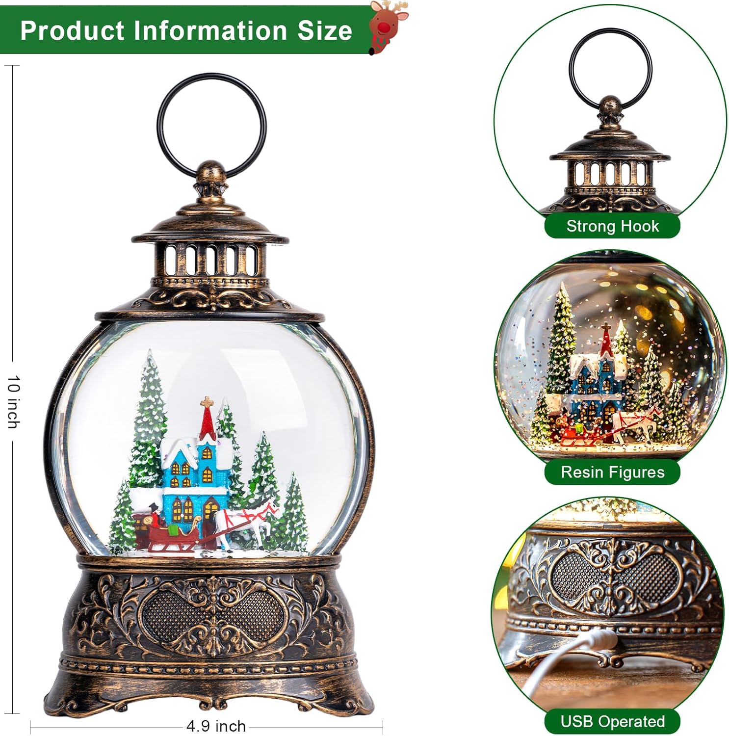 - ๐๐ ใ Christmas Gift ใ This musical snow globe is a beautiful and versatile Christmas decoration for your home. This snow globes for Christmas lantern glitter is also a perfect and thoughtful Christmas gift choice for your family, friends, or loved ones. The musical Christmas snow globe will surely bring a happy and pleasant smile to their faces. Glitter musical snow globe also represents the warmth and joy of Christmas, making it an ideal Christmas spirit booster.