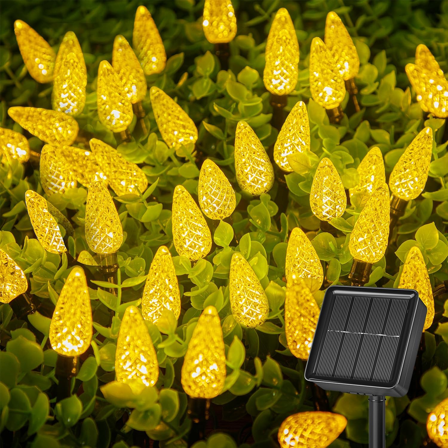 - [50LED Solar C6 Strawberry Christmas Lights] The 50 led C6 strawberry solar lights will bright up your Christmas, Halloween, Thanksgiving day and autumn holiday, bring magical and brightness to your home. Total length: 22.64ft, lead wire length: 6.56ft, space between LEDs: 4 inch