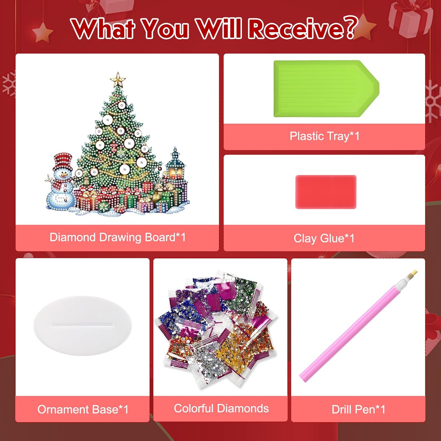 MEIYUDA Christmas Diamond Art Tabletop Kits, DIY Christmas Tree Special Shaped Crystal Desktop Diamonds Painting Ornaments for Adults, Diamond Art Desk Placement Ornaments for Home Decor