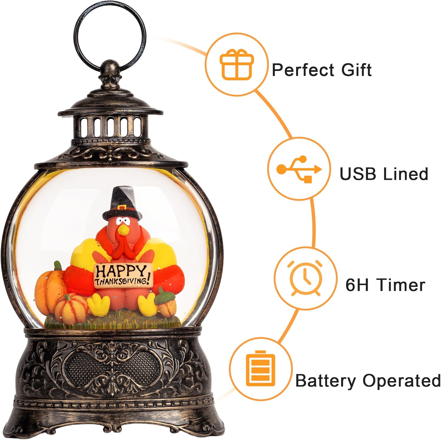 - 🎃【Thanksgiving Snow Globes】The Design Features Pumpkins And Turkeys Cuddling Together To Celebrate Love, Hope, and Encouragement With Happy Thanks Giving, Showcasing Delightful Autumn Elements Such as Pumpkins, Turkeys, and Sparkling Lanterns.