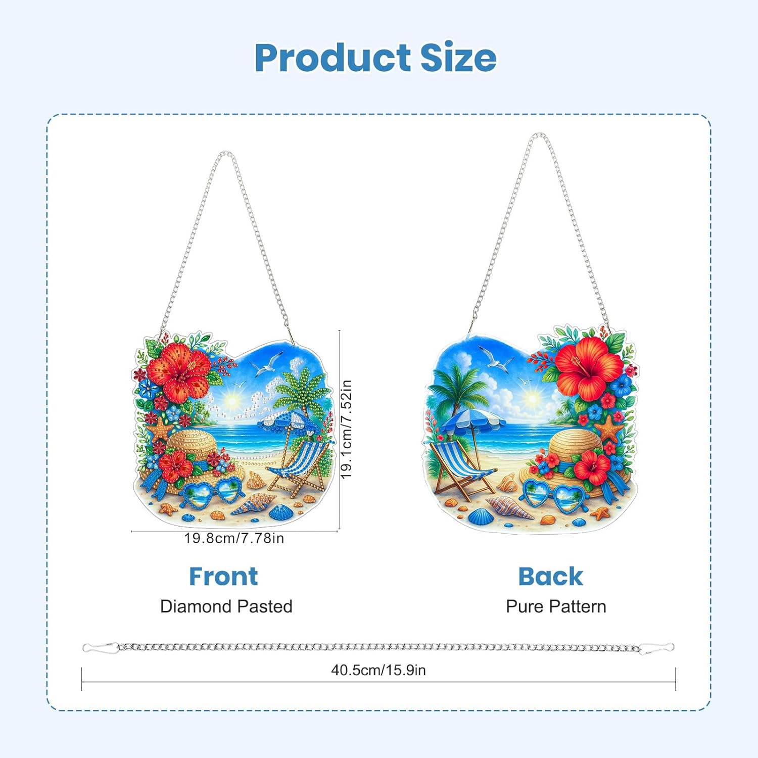 EOBROMD Diamond Hanging Art Kits for Adults, Beach Holiday DIY Special Shaped Rhinestone Kits for Adults, Diamond Art Painting Suncatcher, Window Pendants Home Garden Wall Hanging Ornament