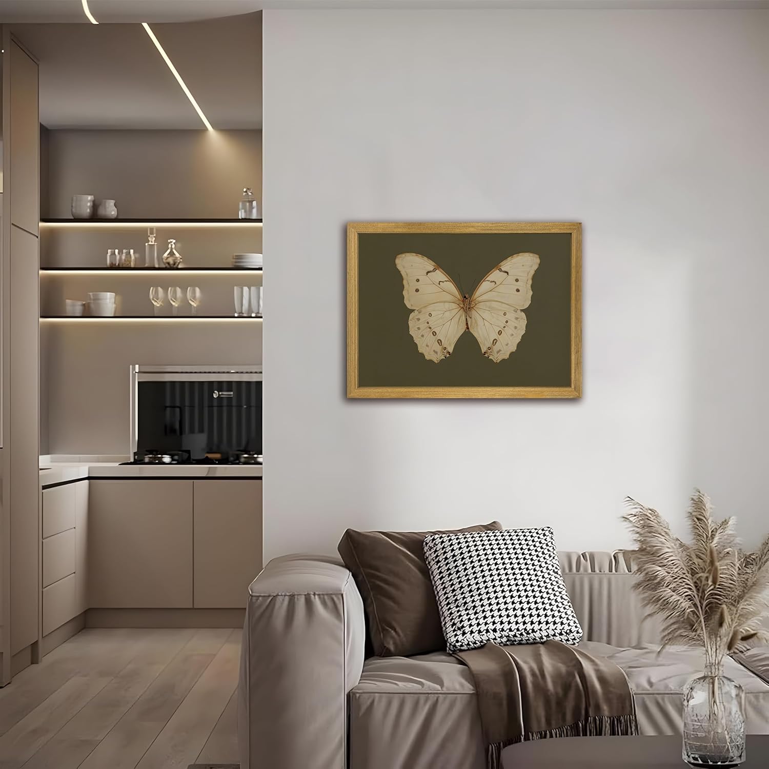 Wood Framed White Butterfly Wall Art, Vintage Butterfly Oil Paintings, Dark Moody Insect Canvas Prints, Boho Sage Green Wall Decor, for Bedroom Kitchen Bathroom Cottagecore Room Decor - 16x24 Inch