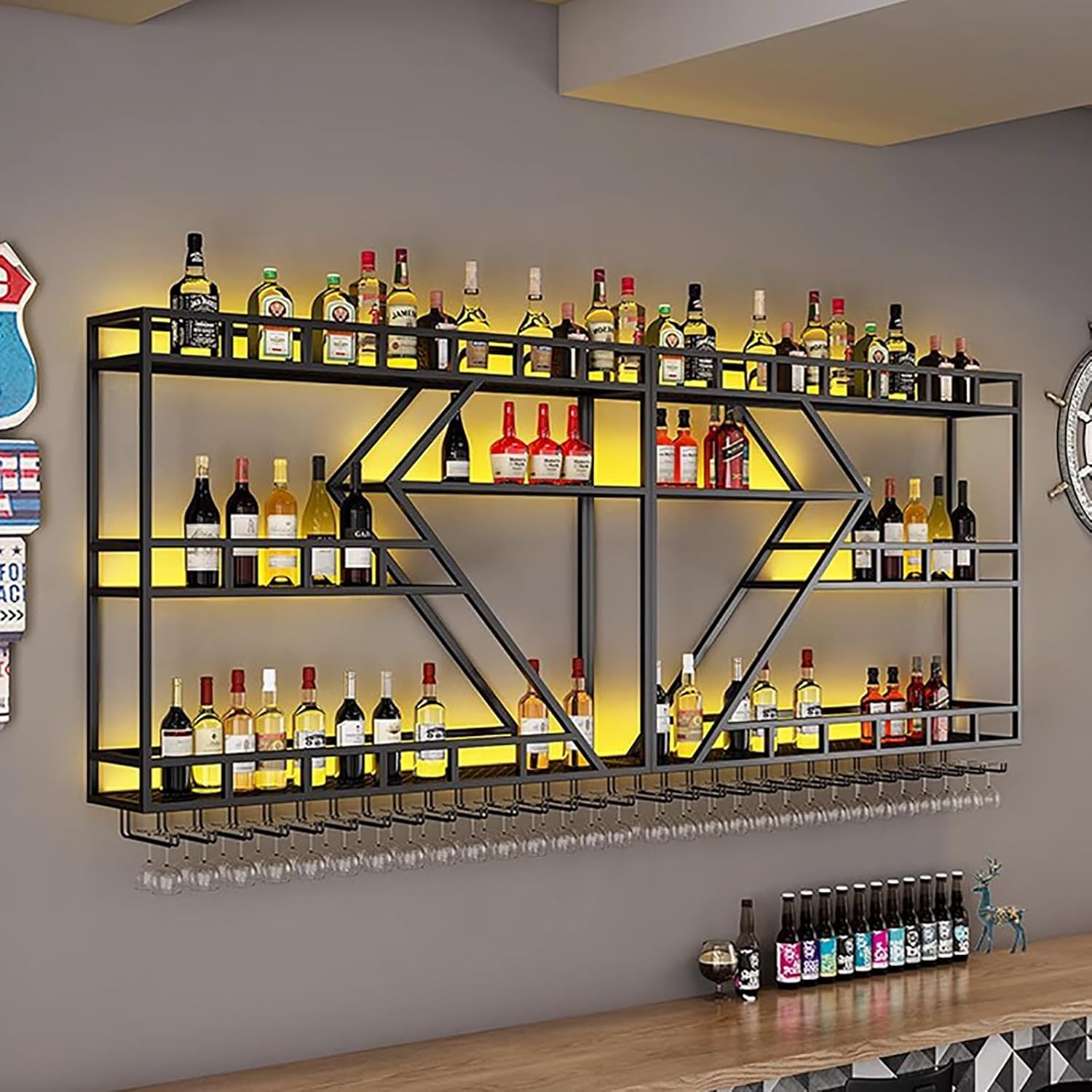 - VERSATILE DISPLAY: Multi-functional shelving perfect for wine bottles, stemware, and decorative items, ideal for home bars, restaurants, or entertainment areas