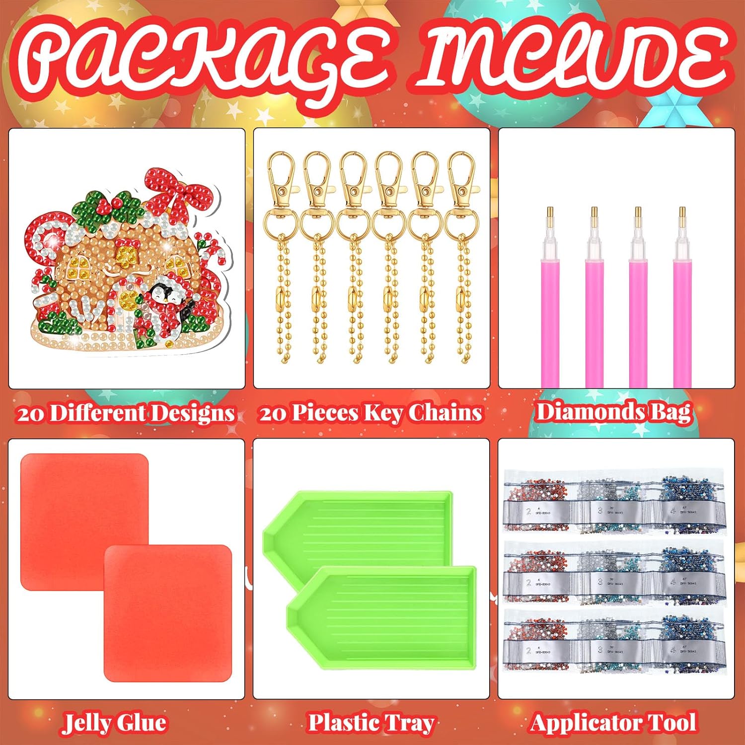 - Package Including: our package contains 20 gingerbread house shape Christmas diamond painting keychains with tools, which are suitable for those who like DIY; Plenty to use for multiple projects or share with friends and family for a fun Christmas together