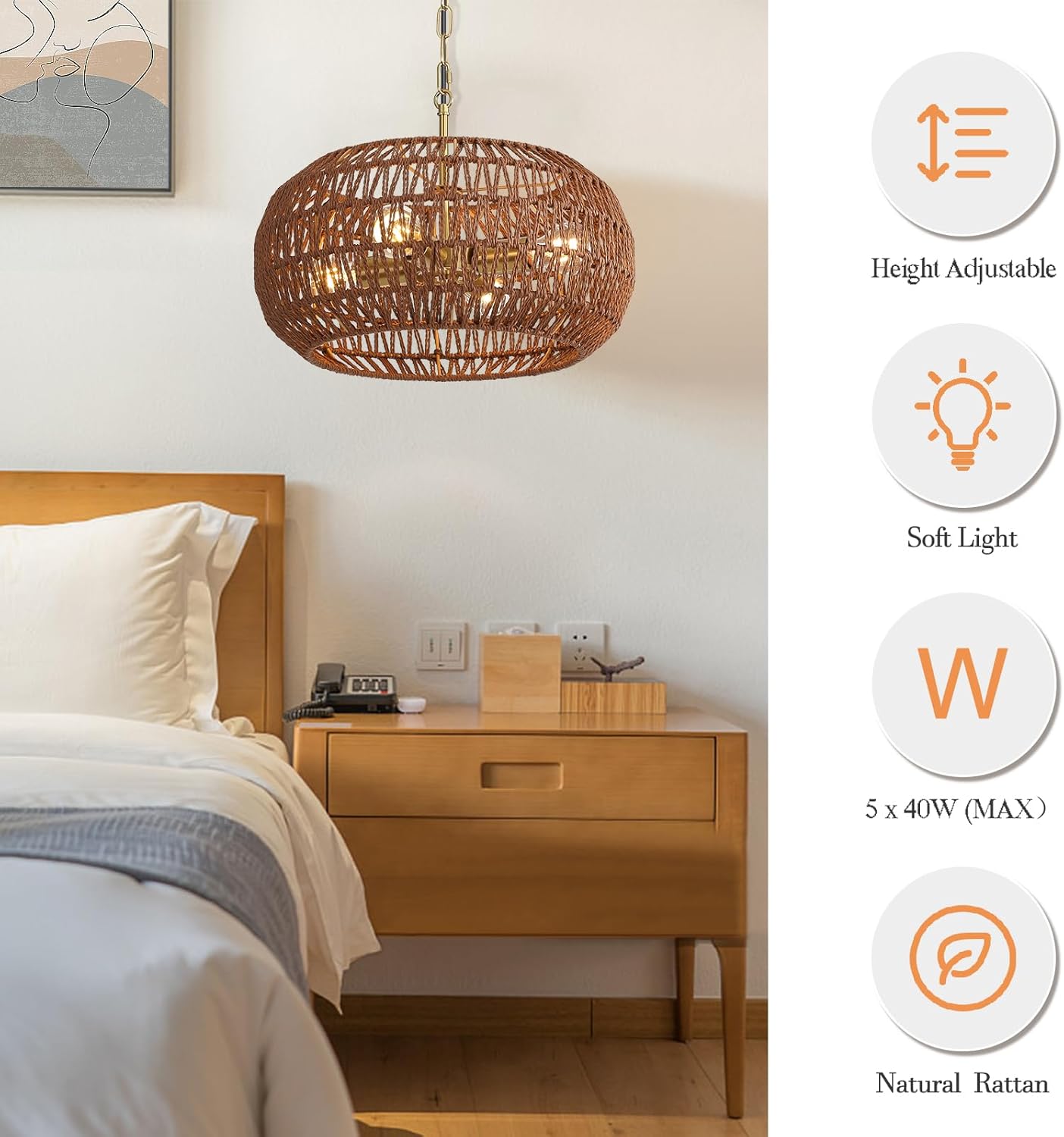 Boho Decor Pendant Light Kitchen Island,Rattan Chandeliers for Dining Room Light Fixture,Modern Farmhouse Decor Hanging Lights for Bedroom Living Room
