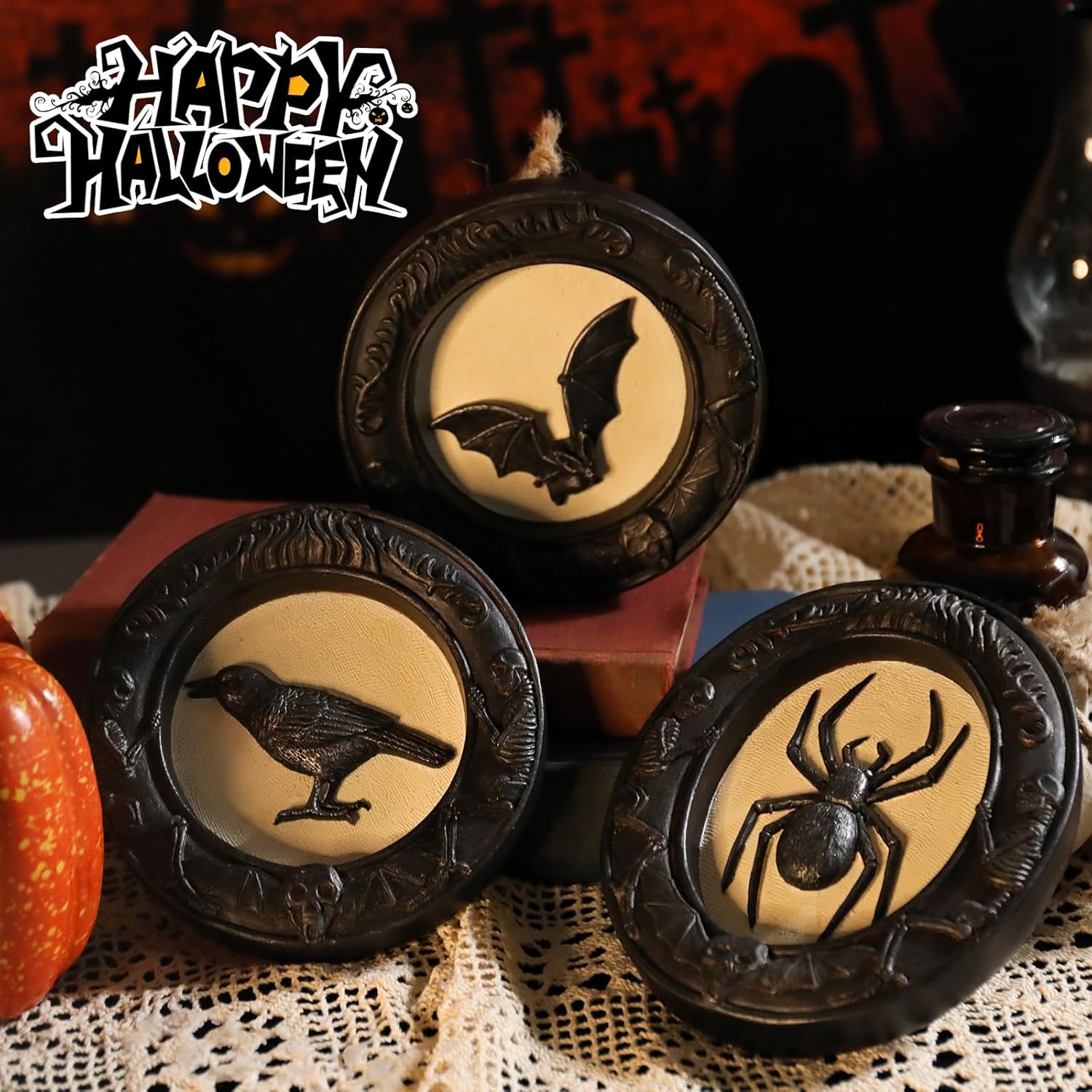 - 【Magical Halloween Wall Hanging Decorations】 Elevate your Halloween decorations with this set of 3 sophisticated Gothic-inspired hanging wall decoration. These Halloween wall sculptures design with spider, crow, bat pattern. Creating a memorable holiday atmosphere in your home with this spooky and eerie decorations