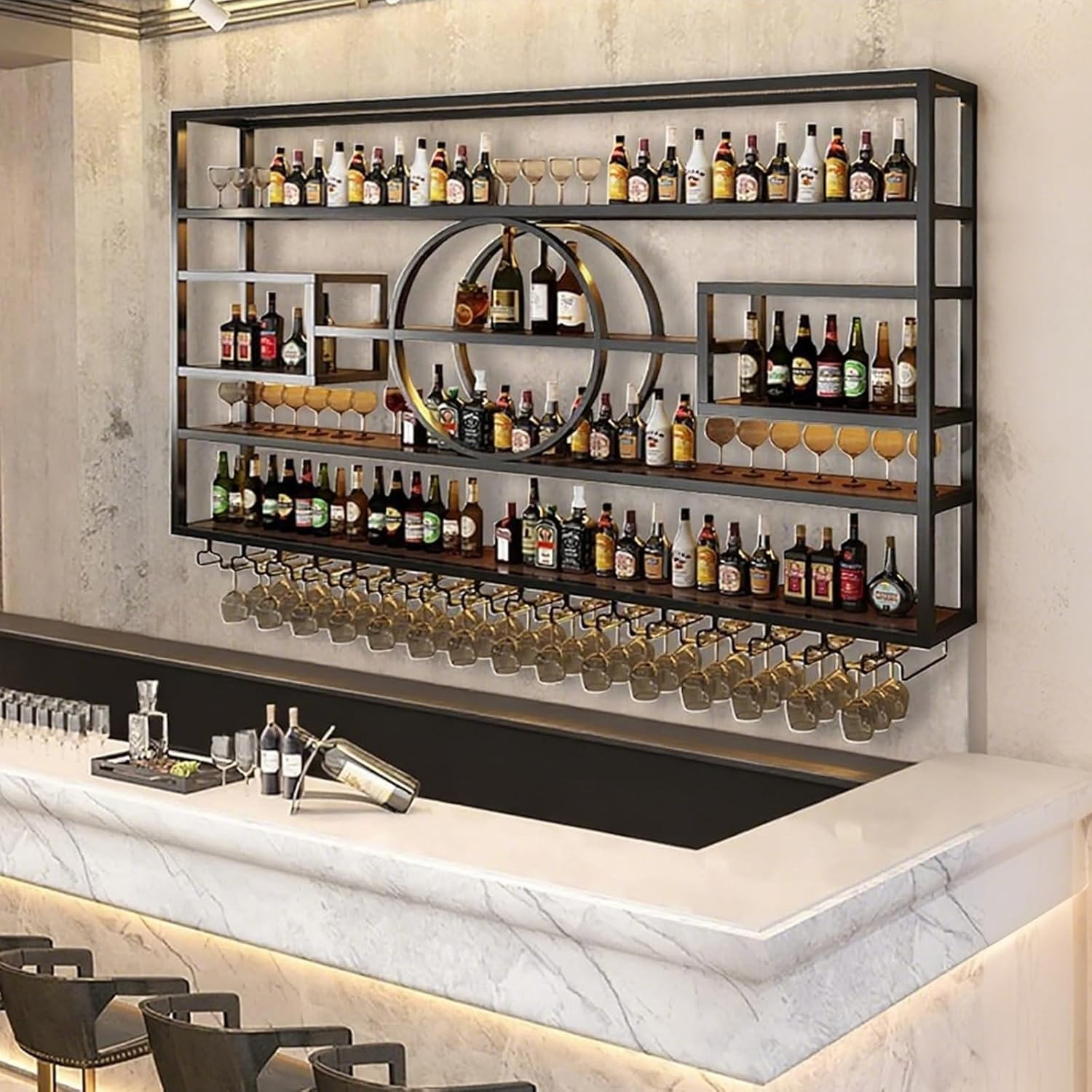 - ăLarge Storage SpaceăThe wall-mounted wine rack can be used as a bar decoration or a large wine storage cabinet. This height can store most wines or spirits when we sit at a small bar to relax all day or have a party. The wine glass rack is sturdy enough to hold more wine glasses. The wine rack doubles as a large storage rack, making the space look neat and organized
