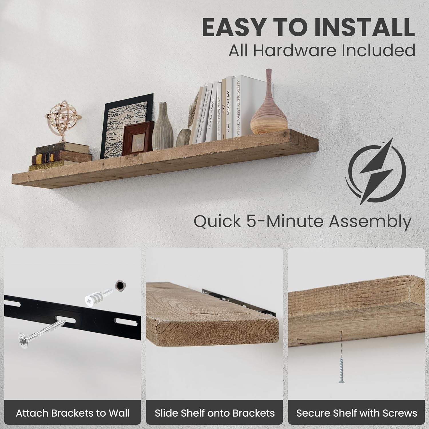 • Multifunctional & Versatile - Designed for both decoration and organization, our wood floating shelves enhance any room in your home while providing additional storage space in the livingroom, kitchen, garage or any space that needs a touch of rustic charm