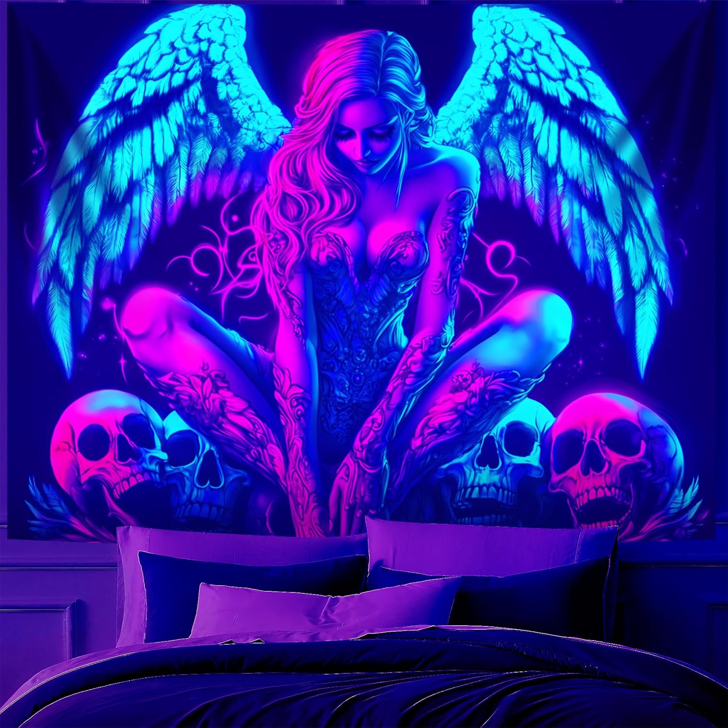 - 【Blacklight/UV Reactive】 Due to the special ink and advanced technology, the blacklight wing tapestry's colors can be changed under Black Light or UV Reactive Light. You can enjoy different effects by kinds of light, the tapestry will be amazing. Under normal light, the colors are also beautiful.