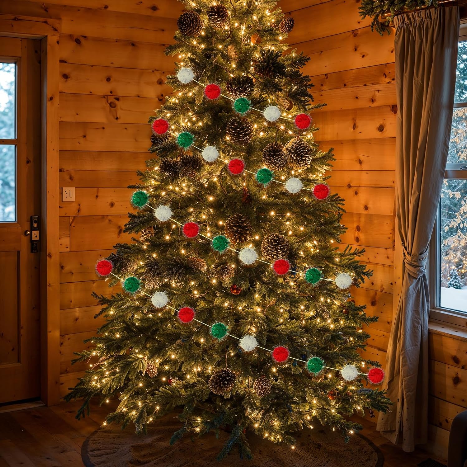 - Glitter Christmas Pom Pom Garland: Our Christmas ball garland is crafted from high-quality glittering balls in three classic Christmas colors, red, green, and white. The vibrant and sparkling colors will bring a unique touch to your Christmas