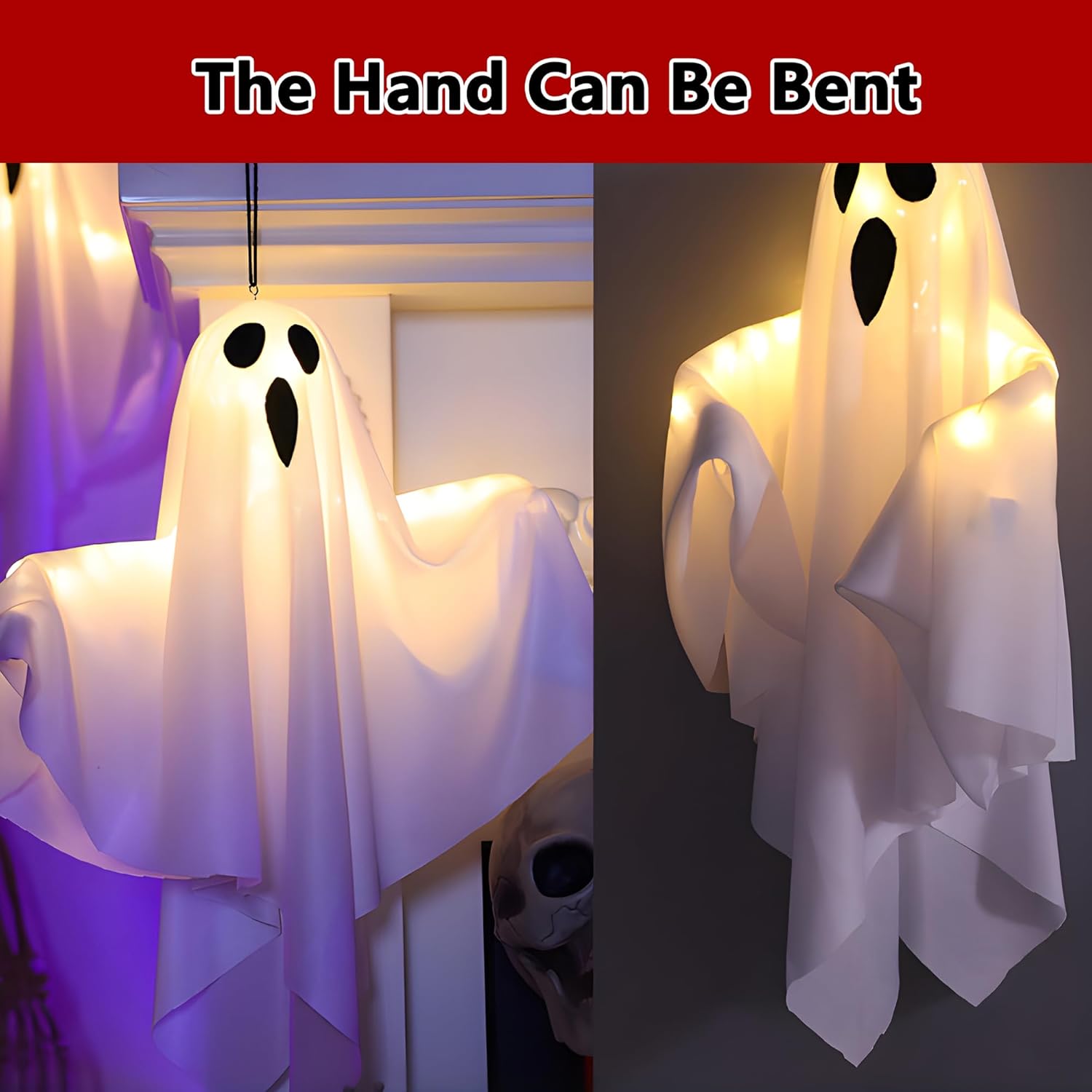 Halloween Light-up Ghost Decorations,Halloween Hanging Flying Ghosts with String Lights,Battery Operated Light up Spooky Ghosts Ornaments for Front Yard, Patio, Lawn, Garden, Party, 19.6 Inch, 2 Pack