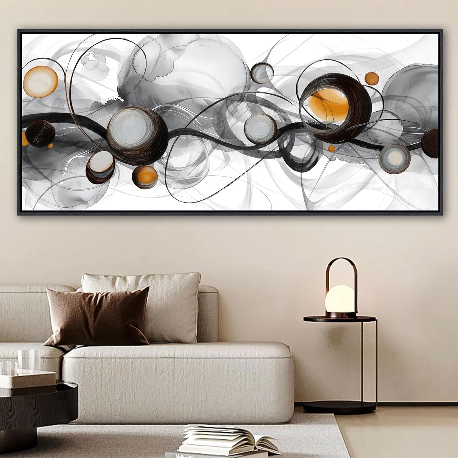 - Large Size Frame Wall Art for Living Room - 86x39 Inches Abstract Artwork Minimalist Painting Modern Black and White Canvas Picture Boho Gray Wall Art
