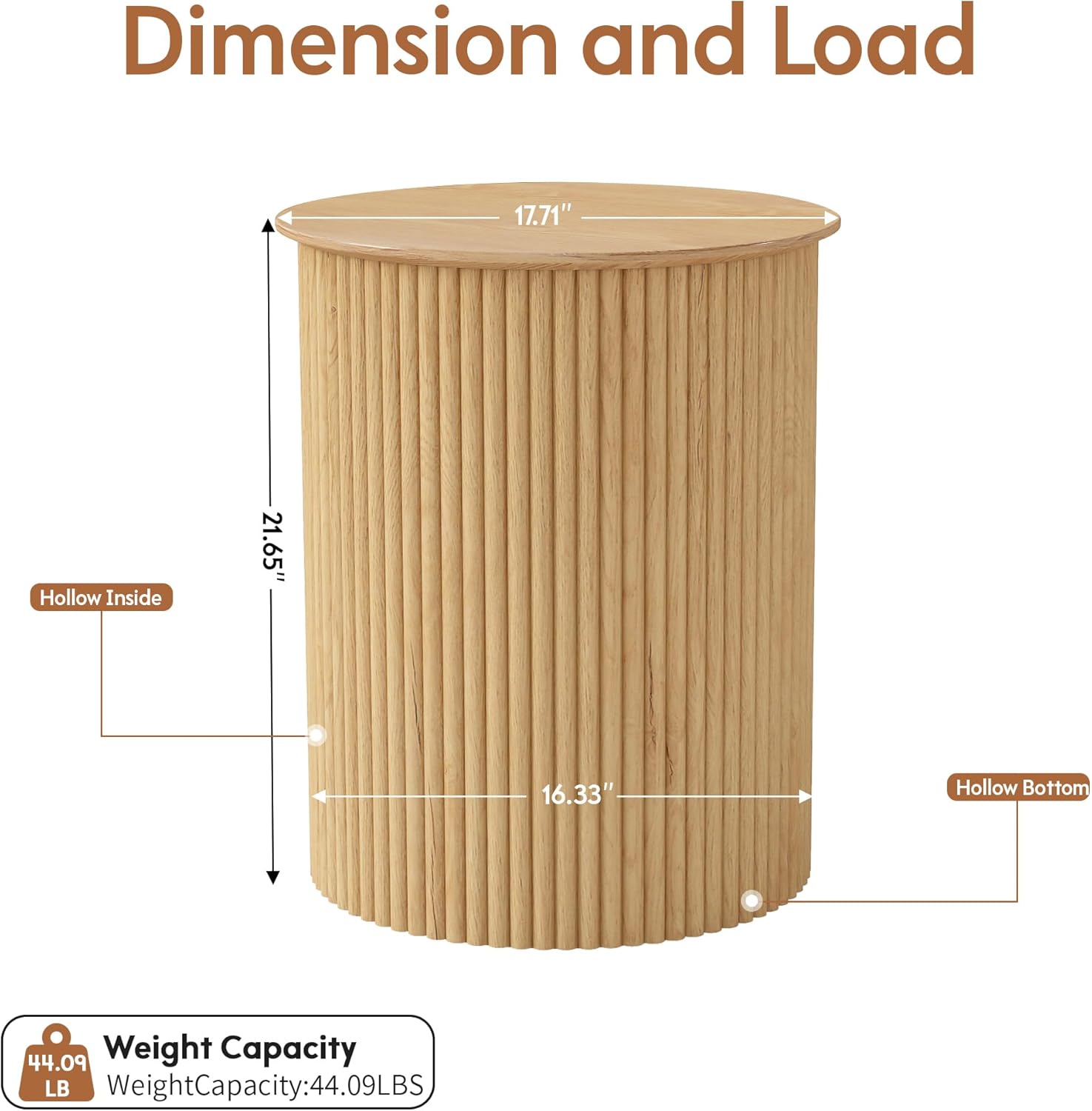 AVZEAR Fluted Round Side Table, Small End Table Modern Boho Nightstands, Circle Bedside Tables Bohemian Accent Table Wood Night Stand for Small Spaces, Living Room, Bedroom(Natural)