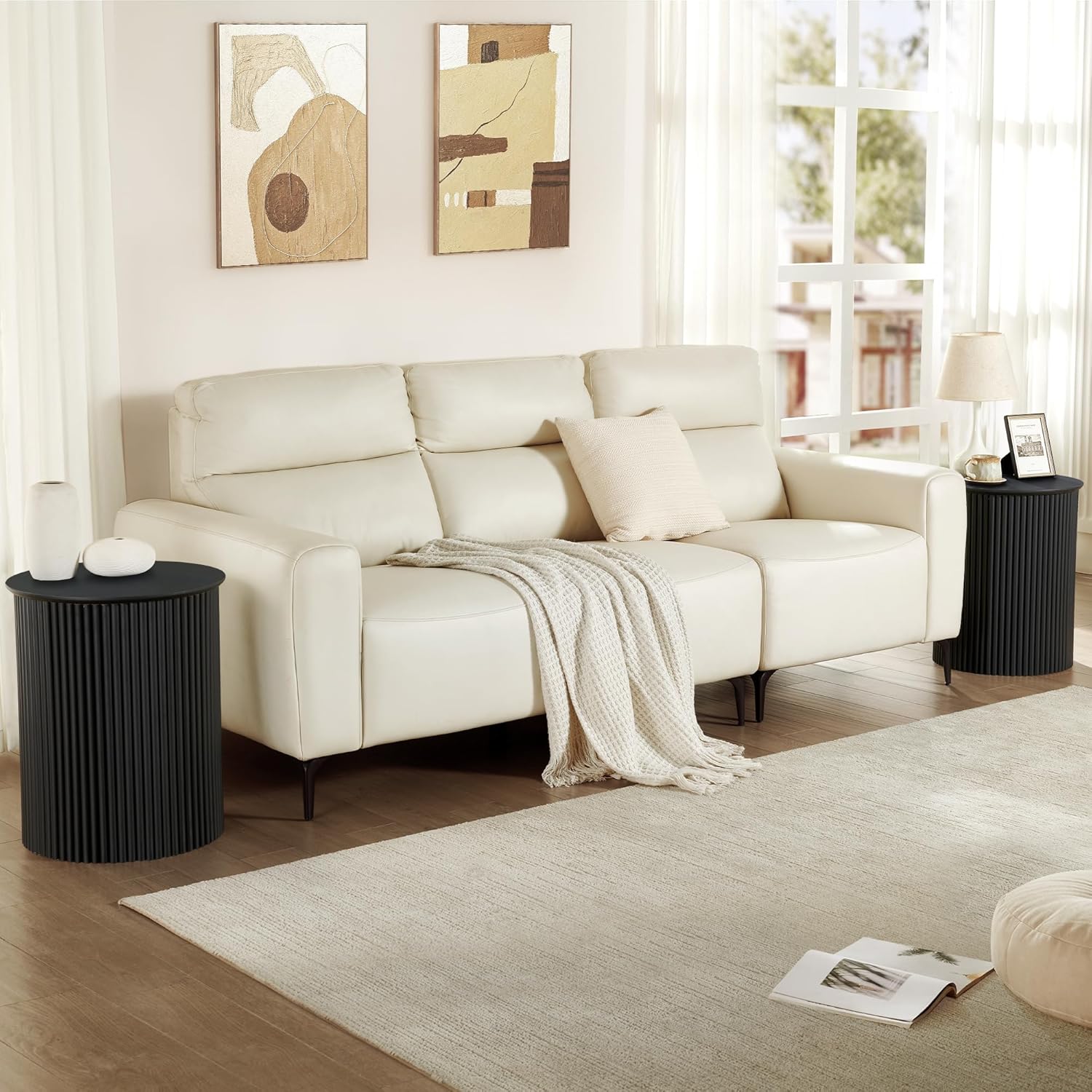 AVZEAR Fluted Round Side Table Small Mid Century End Table, 17.7" Fluted Nightstands Modern Circle Bedside Tables, Black Wood Night Stand for Small Spaces, Living Room, Bedroom (Black)
