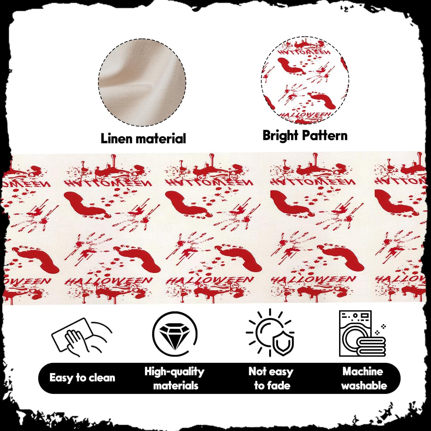 - Creating a Halloween Festive Atmosphere: This product features bright red bloodstains and footprint patterns, making it the perfect decoration for Halloween dining tables, suitable for daily dining and party dinners