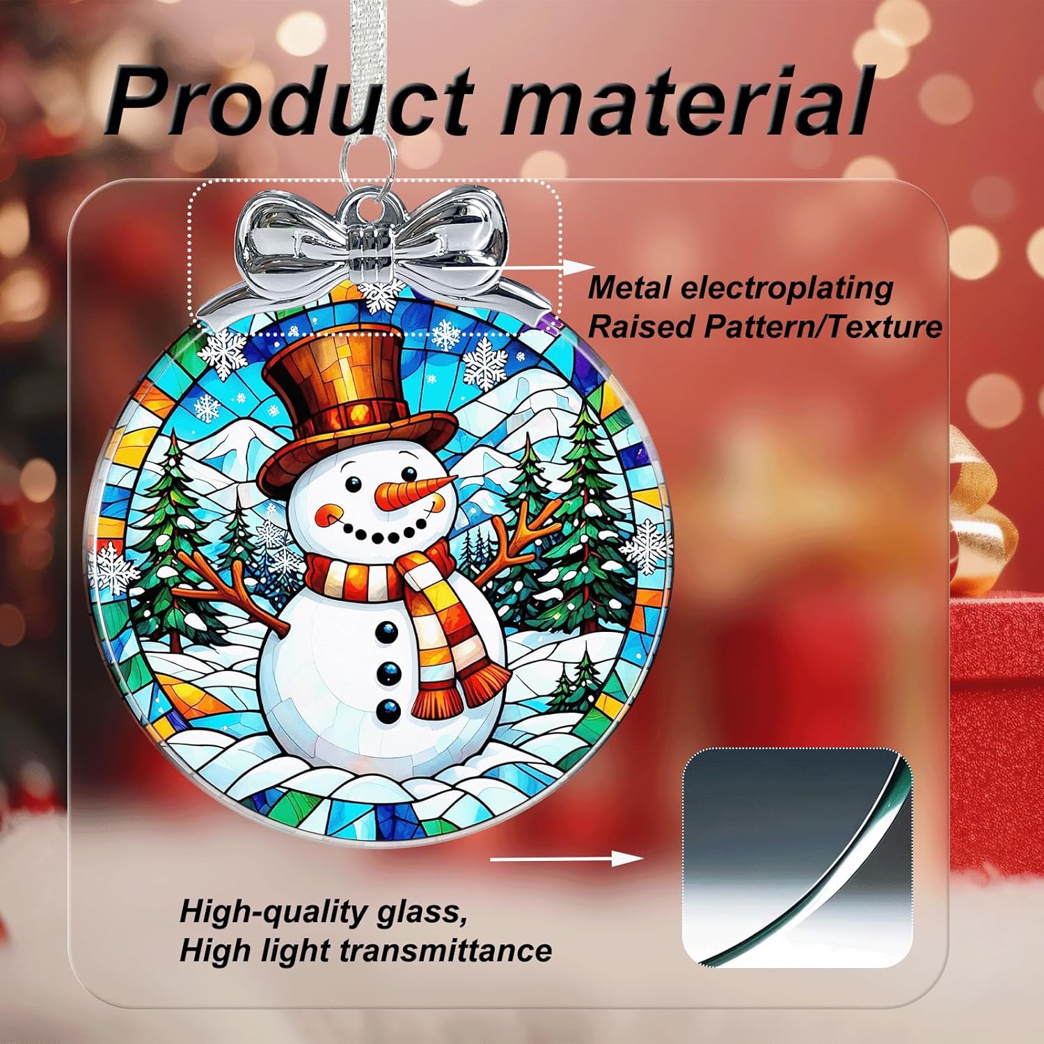 Snowman Stained Glass Christmas Ornament - Hanging Ornaments for Christmas Tree Decorations -Holiday Keepsake Present Exchange Idea