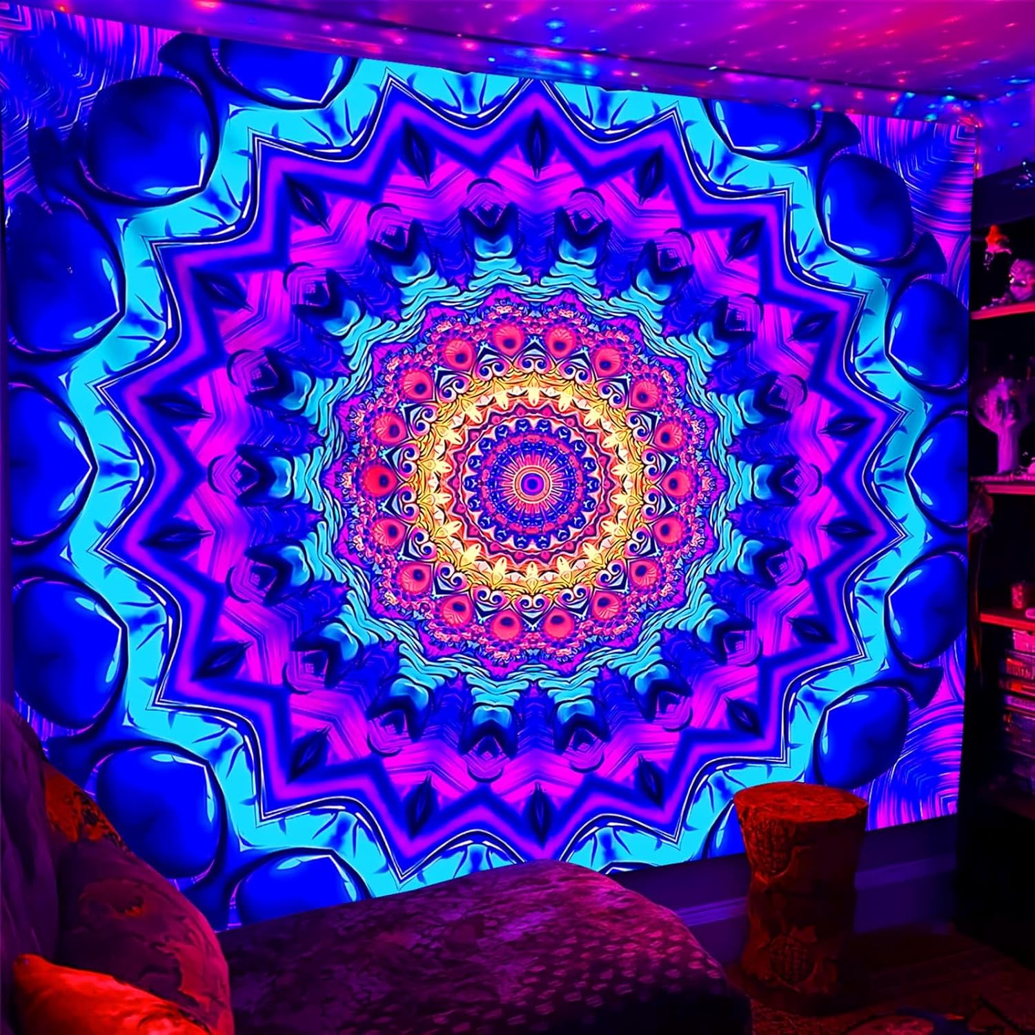 Blacklight Mandala Tapestry for Bedroom, Black Light Posters for Adults and Teens, Colorful UV Reactive Aesthetic Bohemian Wall Art Decor (40 x 30 Inches)