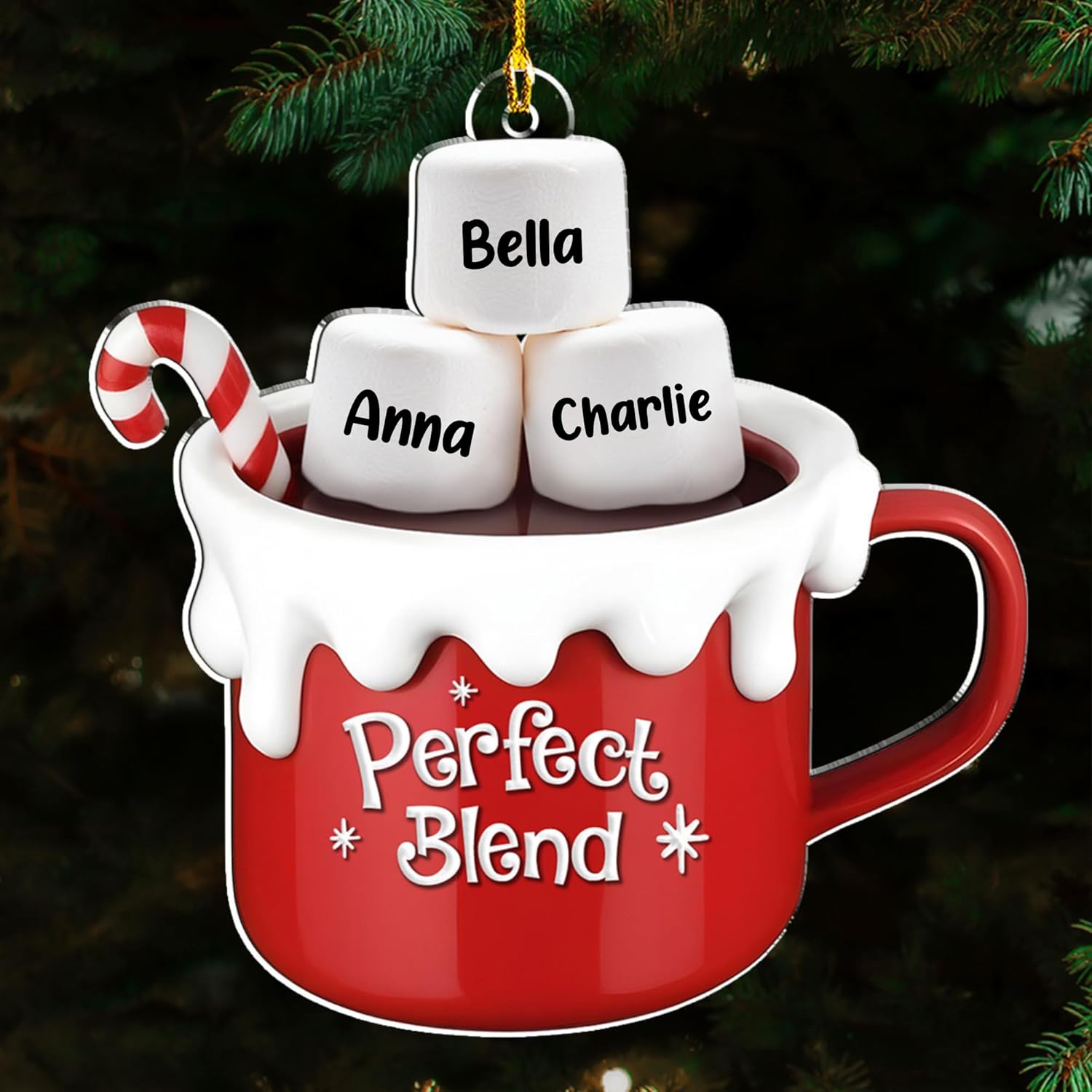 A Blend of Christmas Cheer Personalized Acrylic Ornament β Custom Name Charms Family Members up to 10 People, Holiday Decoration for Family Members & Friends