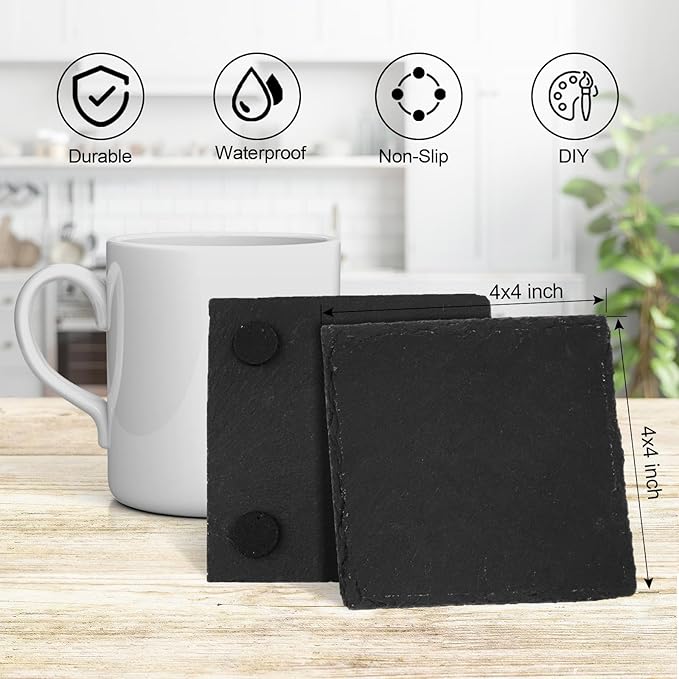 - Ideal for laser engraving and etching: you can personalize each coaster to match your décor. Whether it's a name, a special message, or a unique design, the possibilities are endless. You can also write on it with chalk and paint with paint. This DIY feature adds a unique touch to coasters, making them not only a functional item but also a work of art.