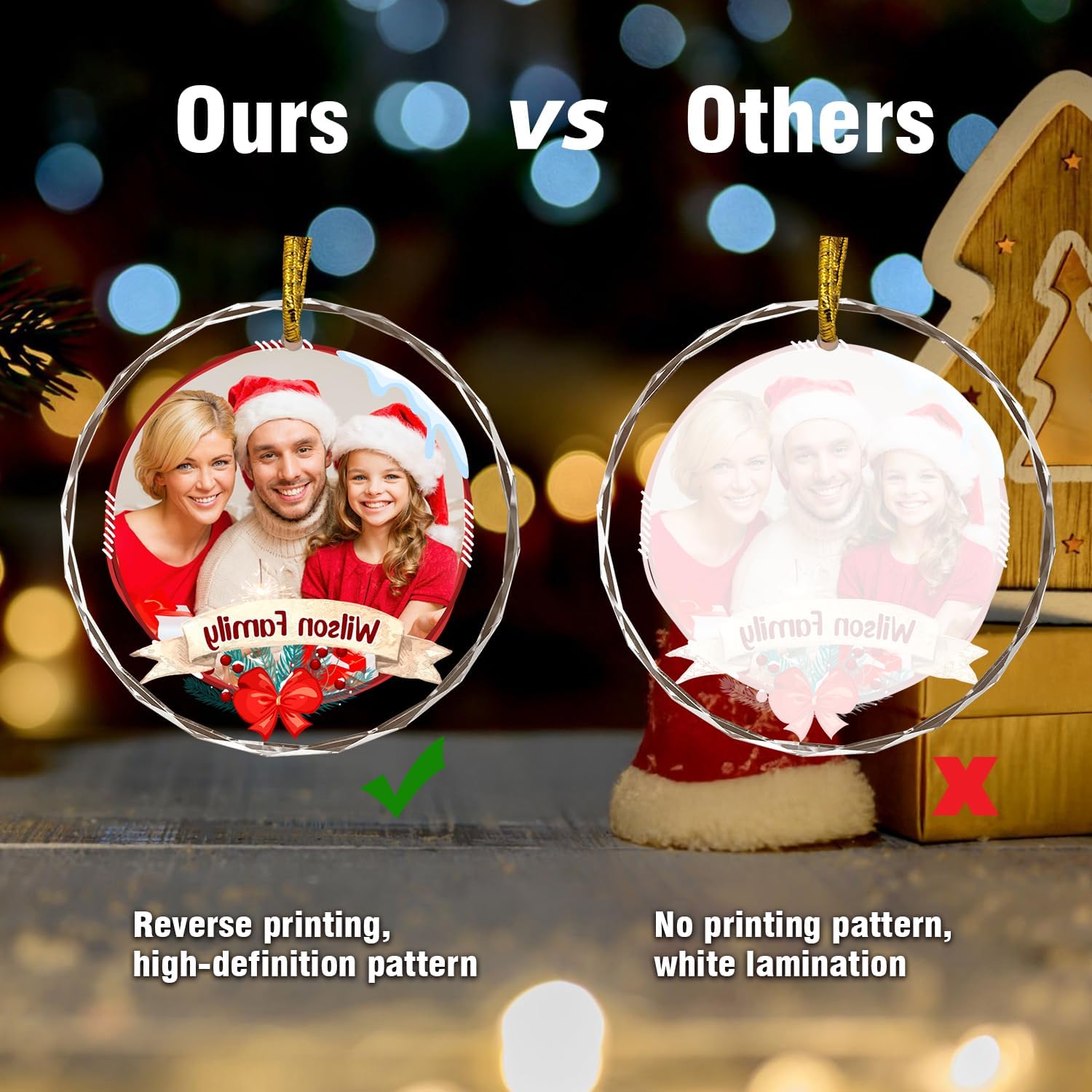 - 🎄Unique Double-sided Printing --- Ordinary crystal pendants are printed on one side, with only one side having your customized photo and text. Our crystal pendants are printed on both sides, with patterns and text no matter which side you look at them from.