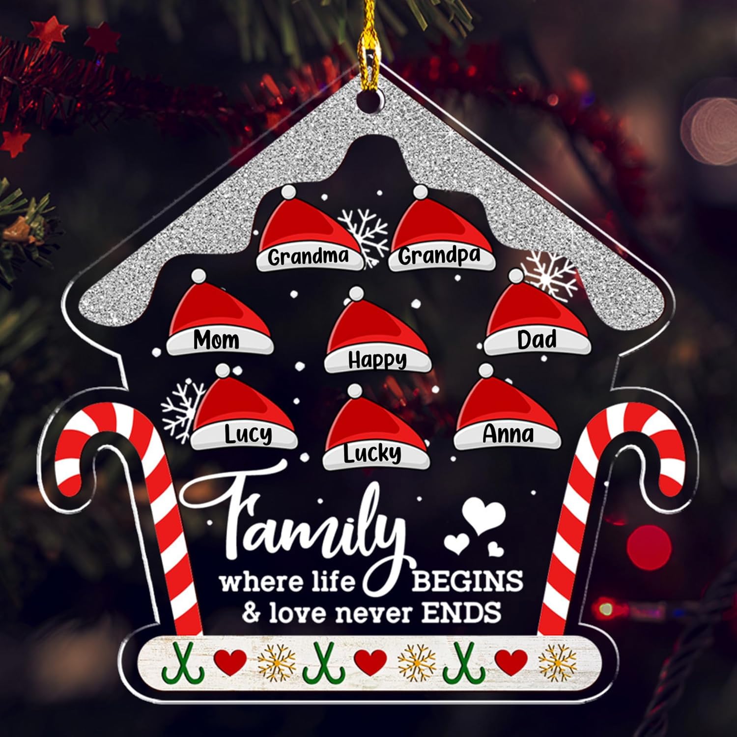Personalized Chrismas Ornament 2025 - Love Never Ends, Custom Name Charms Family Members up to 10 People, for Family, Friends, and Loved Ones