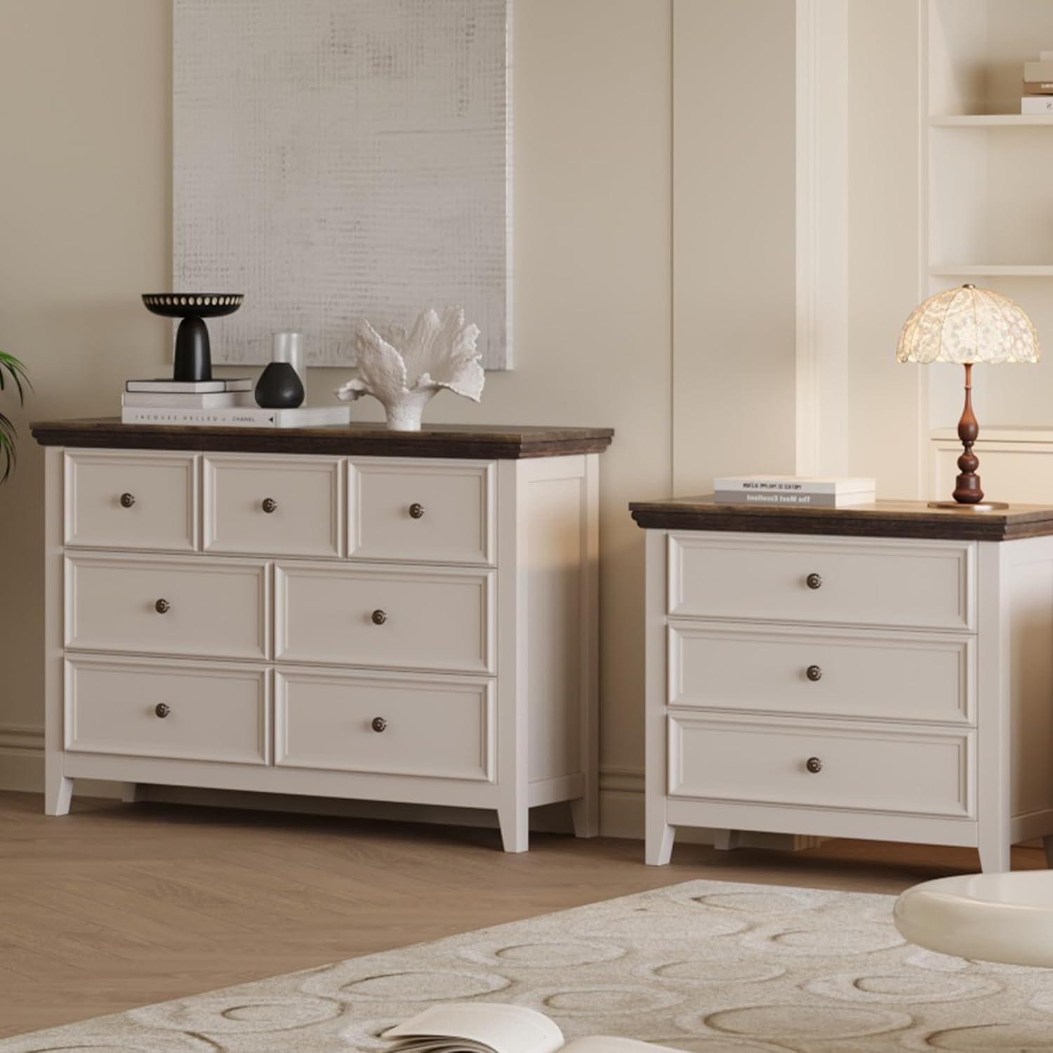 BLANKSPACE 7 Drawer Dresser, Modern Farmhouse Dresser Chest of Drawer for Bedroom, Chest of Drawers Storage Cabinet for Living Room, Entryway, Hallway, Antique White