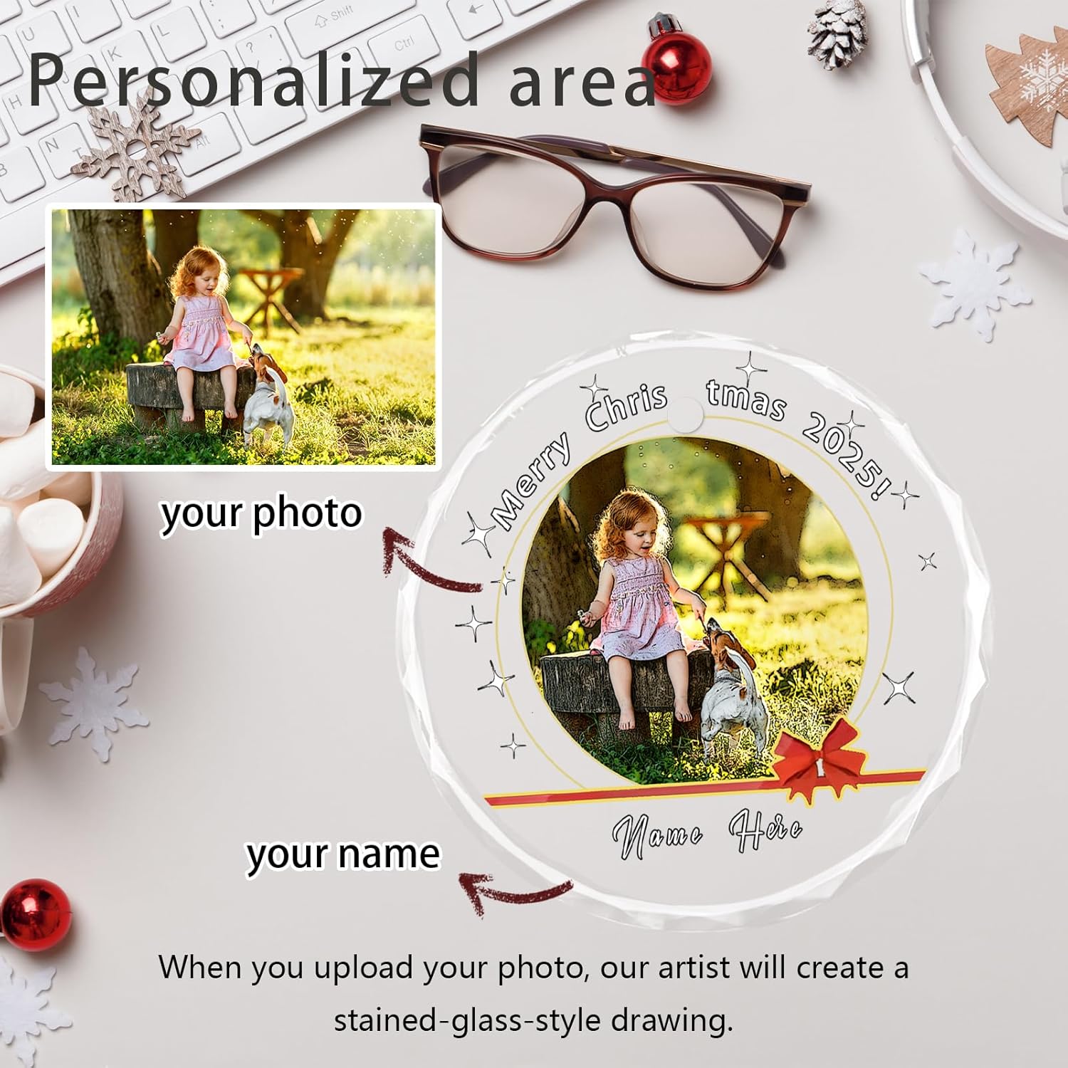 Personalized Christmas Ornaments, Custom Glass Ornament with Name/Photo/Text,Customized Christmas Tree Decor Gifts for Family, Dad, Mom, Him, Her, Couple, Red Ribbon