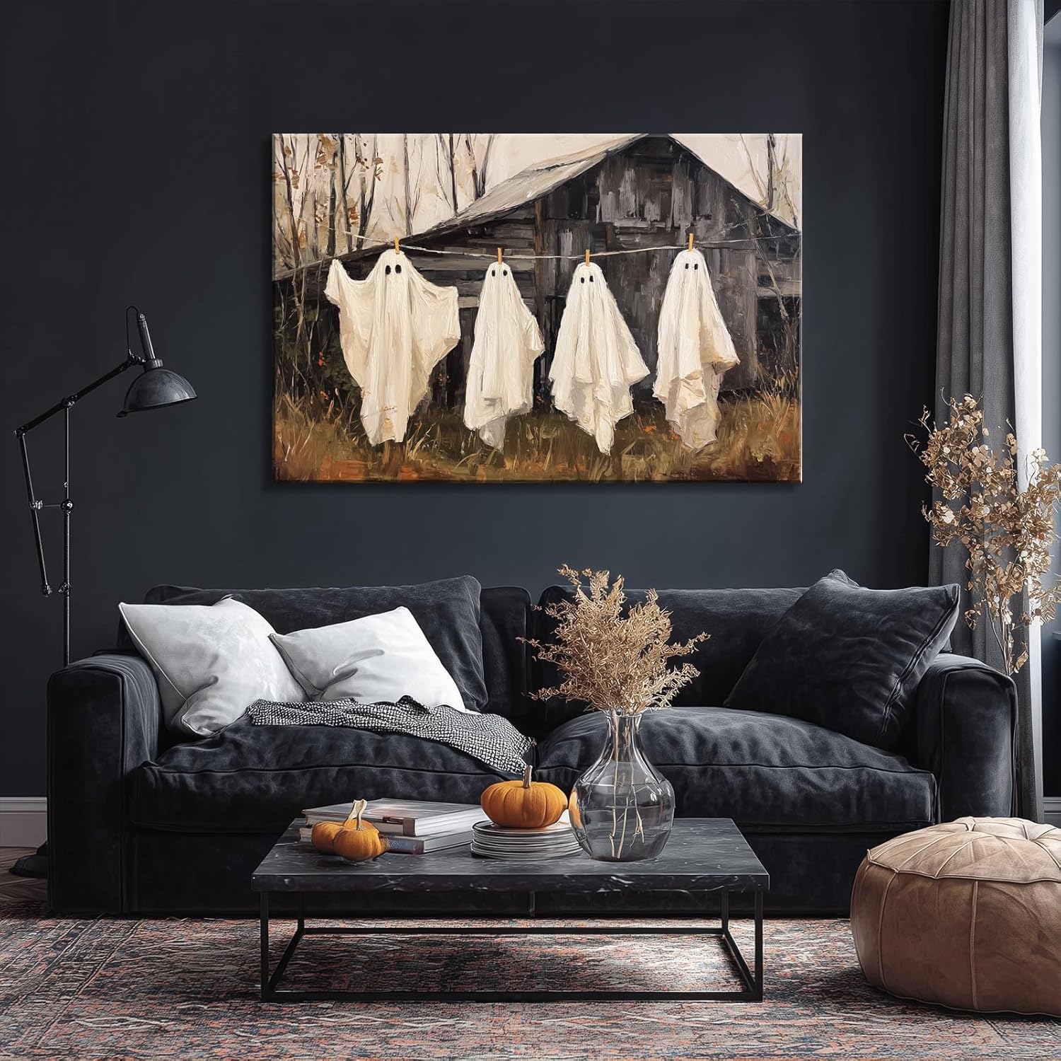 - Easy to Display: The cute ghost wall art have a hanging kit, and hang it on the wall as soon as you receive it. This modern wall art print is the ideal choice for vintage Halloween decorations
