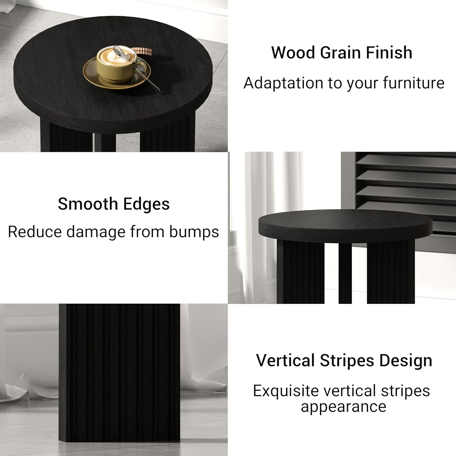 Nesting Coffee Table Set of 2, Modern Wooden Coffee Table with Smooth Thick Design, Circle Tea Table and End Table Set, Accent Center Tables for Living Room, Office, Black