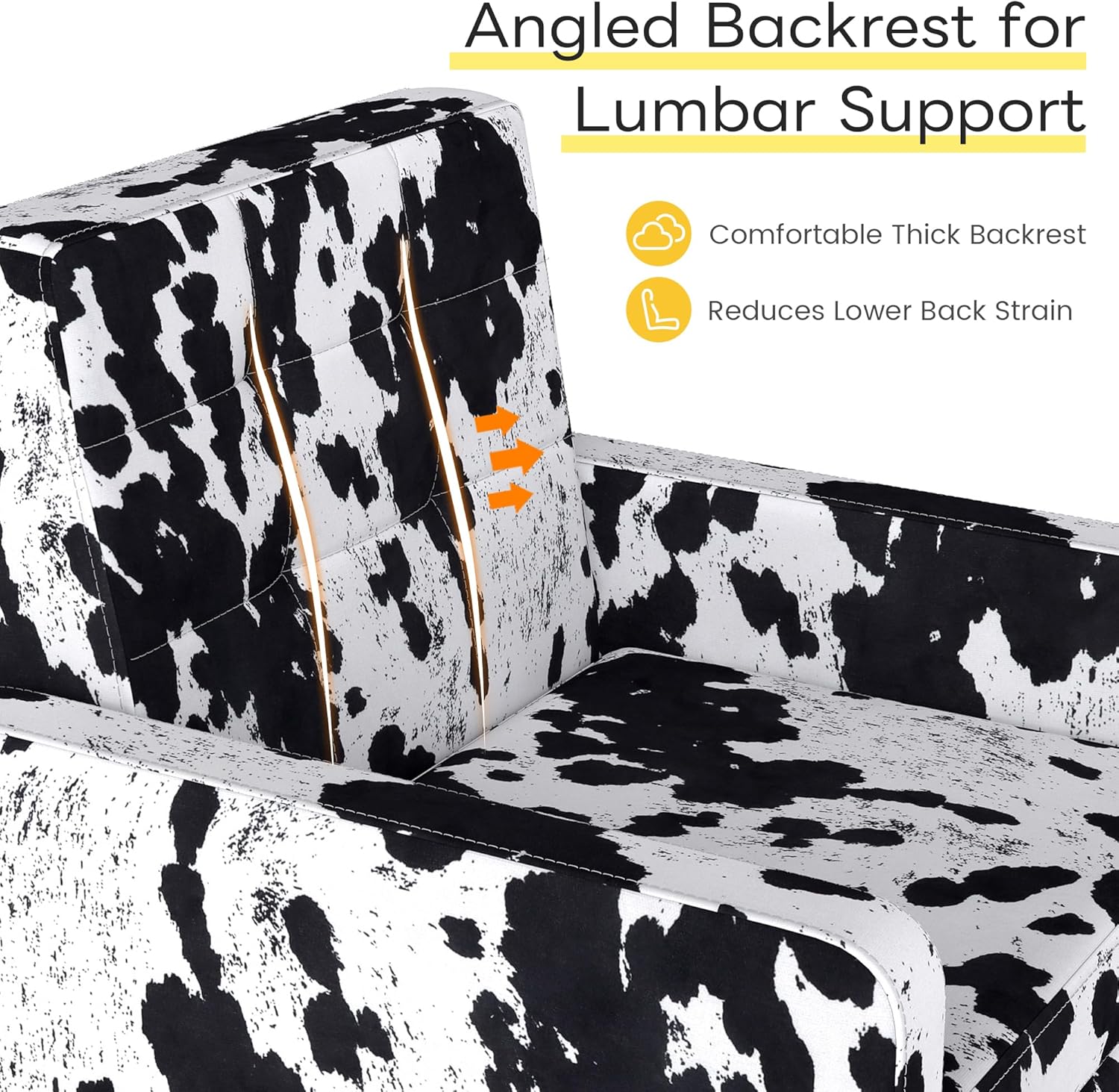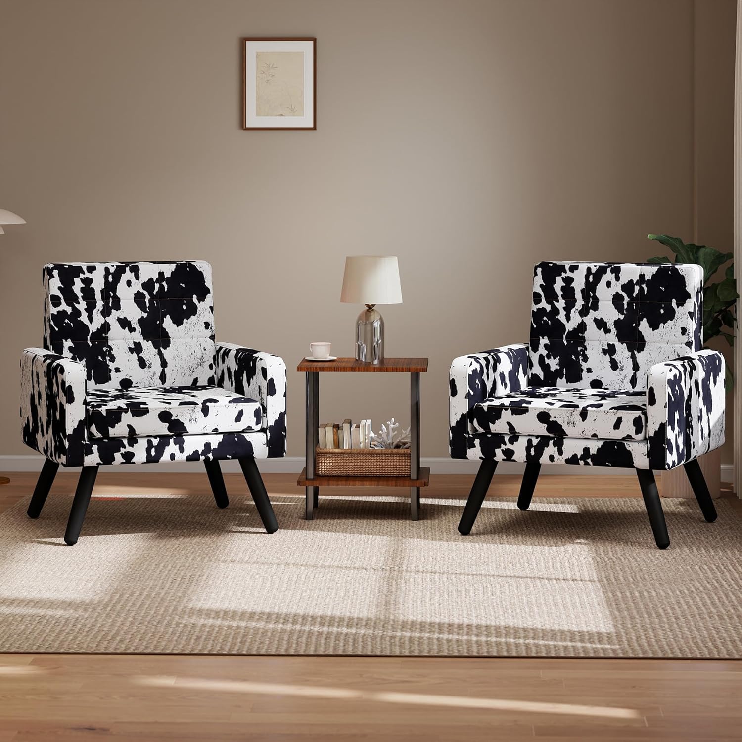 Kromax Mid-Century Modern Accent Chair Set of 2 for Living Room, 496 Lb. Weight Capacity, Dual Armrests, Comfy Extra Large Seat, Timeless Style Perfect for Reading & Relaxing, Cow Pattern
