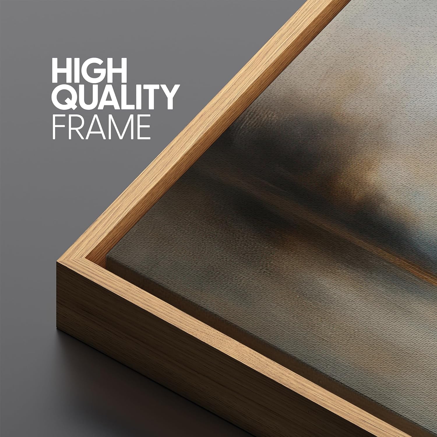 MUDECOR Extra Larg Framed Canvas Print Wall Art Abstract Landscape Neutral Tones Misty Horizon Illustrations Decorative Colorful for Bedroom - 60"x30"
