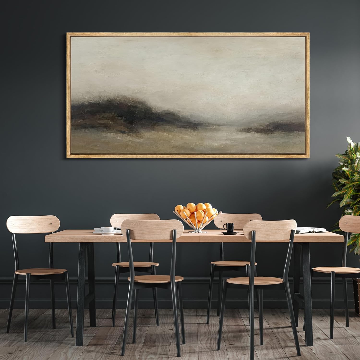 MUDECOR Extra Larg Framed Canvas Print Wall Art Foggy Mountain Horizon Landscape Neutral Tones Abstract Illustrations Decorative Colorful for Bedroom - 60"x30"